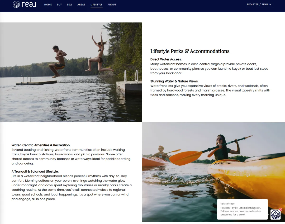 Our Waterfront Living lifestyle page is designed to capture high-intent buyers searching specifically for homes on or near the water. Instead of sending traffic to a generic listings page, this page curates lakefront, riverfront, coastal, and dock-accessible properties into one focused experience that highlights views, water access, and the lifestyle buyers actually care about. It helps your site rank for competitive searches like “waterfront homes for sale” while keeping visitors engaged longer and driving stronger lead conversion by immediately showing them they’re in the right place.