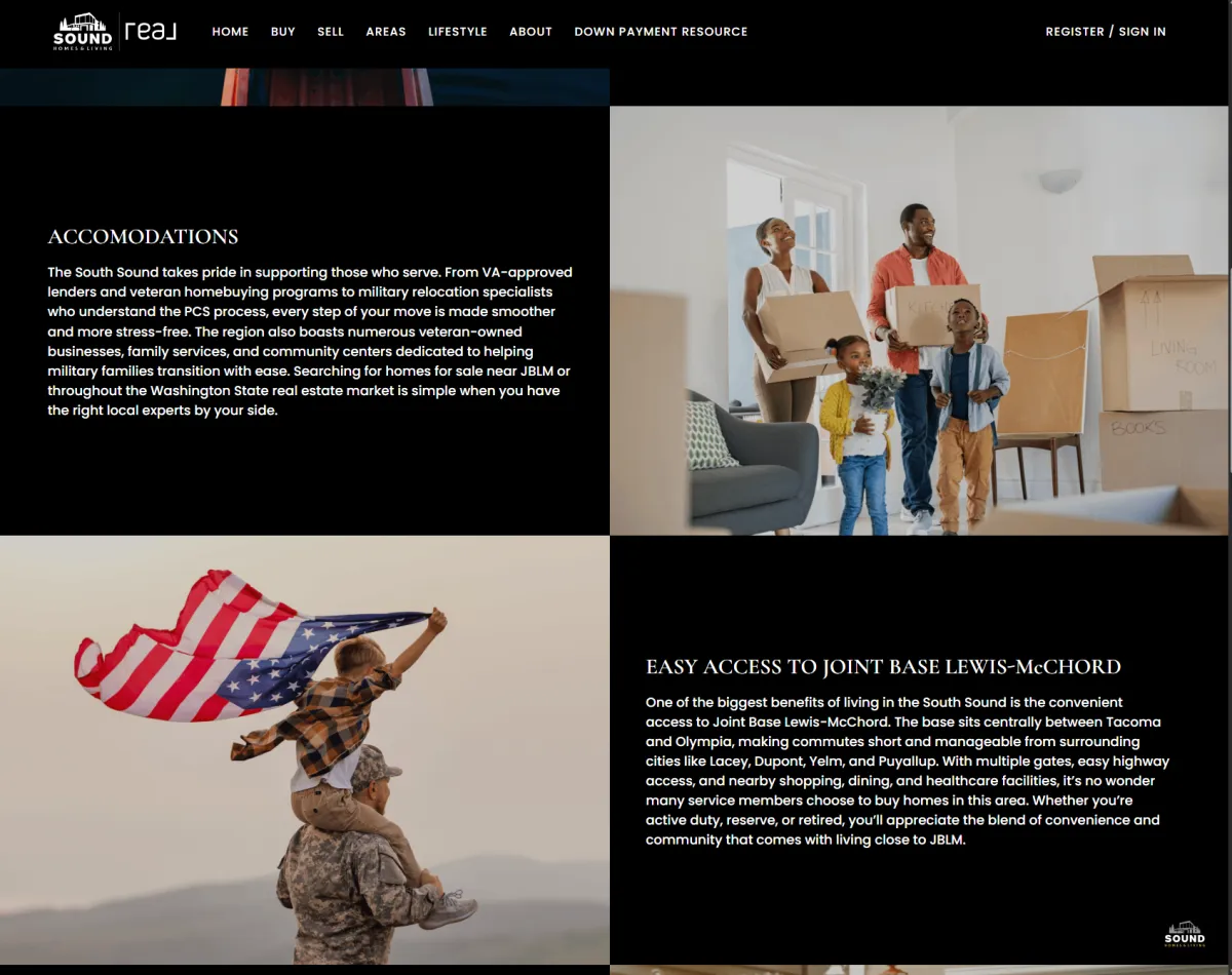 Our Military & Veterans lifestyle page is built to speak directly to active-duty service members, veterans, and military families relocating or buying with VA benefits. This page groups relevant homes together while addressing the specific needs this audience cares about—proximity to bases, commute times, neighborhood stability, and VA loan–friendly properties. It also positions you as a knowledgeable, trusted resource by clearly showing that you understand military moves, timelines, and financing, helping your site rank for military- and VA-related searches while converting highly motivated buyers who want to work with an agent that gets their situation.
